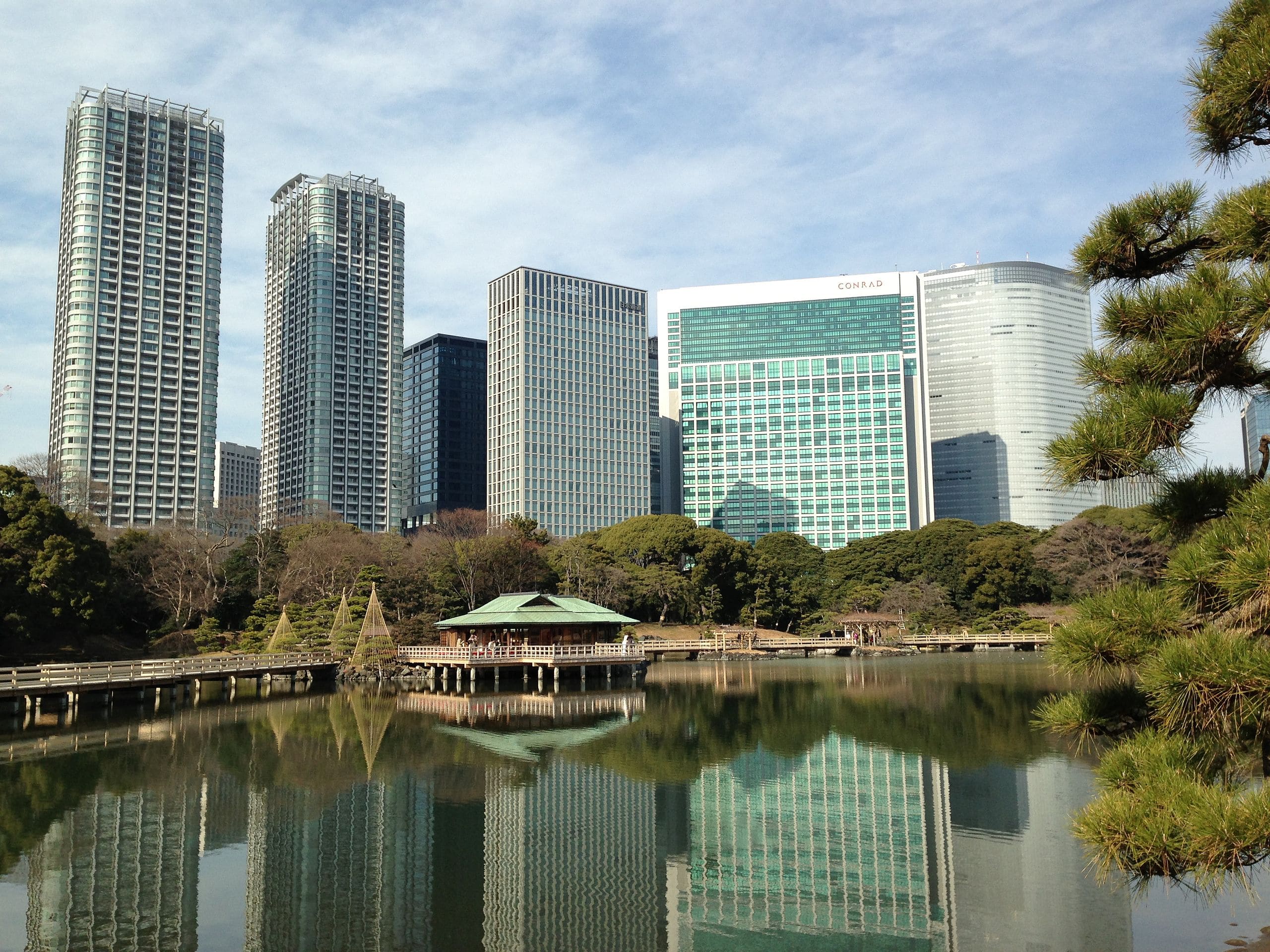 Уникальность парка Хамарикю состоит в гармоничном сочетании традиционных ландшафтных дизайнов и новых небоскребов. Также он примечателен своими прудами. Вода в них соленая, она поступает из Токийского залива. Осенью здесь можно подобрать огненные кленовые листы, почувствовать единение с окружающим миром, попробовать традиционный зеленый японский чай. Его предлагают в чайном домике, где в средние века принимал посетителей сёгун (фактический правитель Японии).